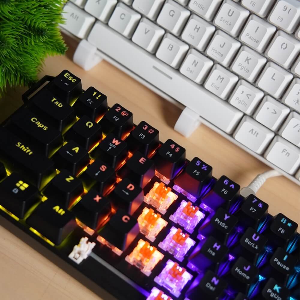 The mechanical switches provide tactile response and durability rated for millions of keystrokes. Low actuation force and quick response times give gamers the competitive edge needed for fast-paced titles. The compact layout brings commonly used keys closer together, reducing hand movement during gameplay.