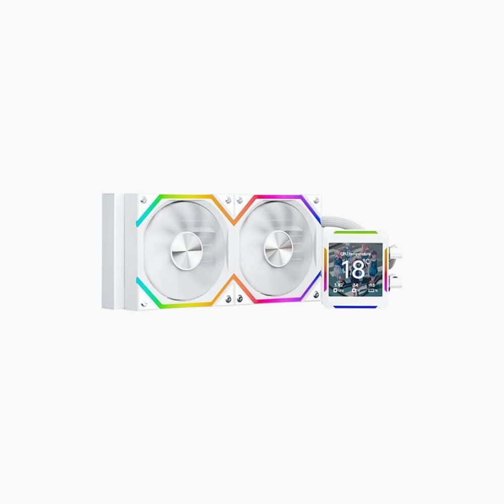 White Jungle Leopard AstroBeat ARGB AIO Liquid CPU Cooler – Digital Display & High Performance