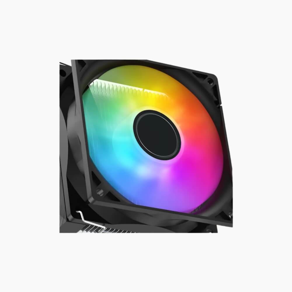 This cooler features a 92mm RGB fan with fixed mixed rainbow illumination that adds visual flair without complicated software or controllers. The fan spins at up to 2200 RPM, producing ample airflow to effectively dissipate heat from your CPU while maintaining a quiet noise profile (~28 dBA).