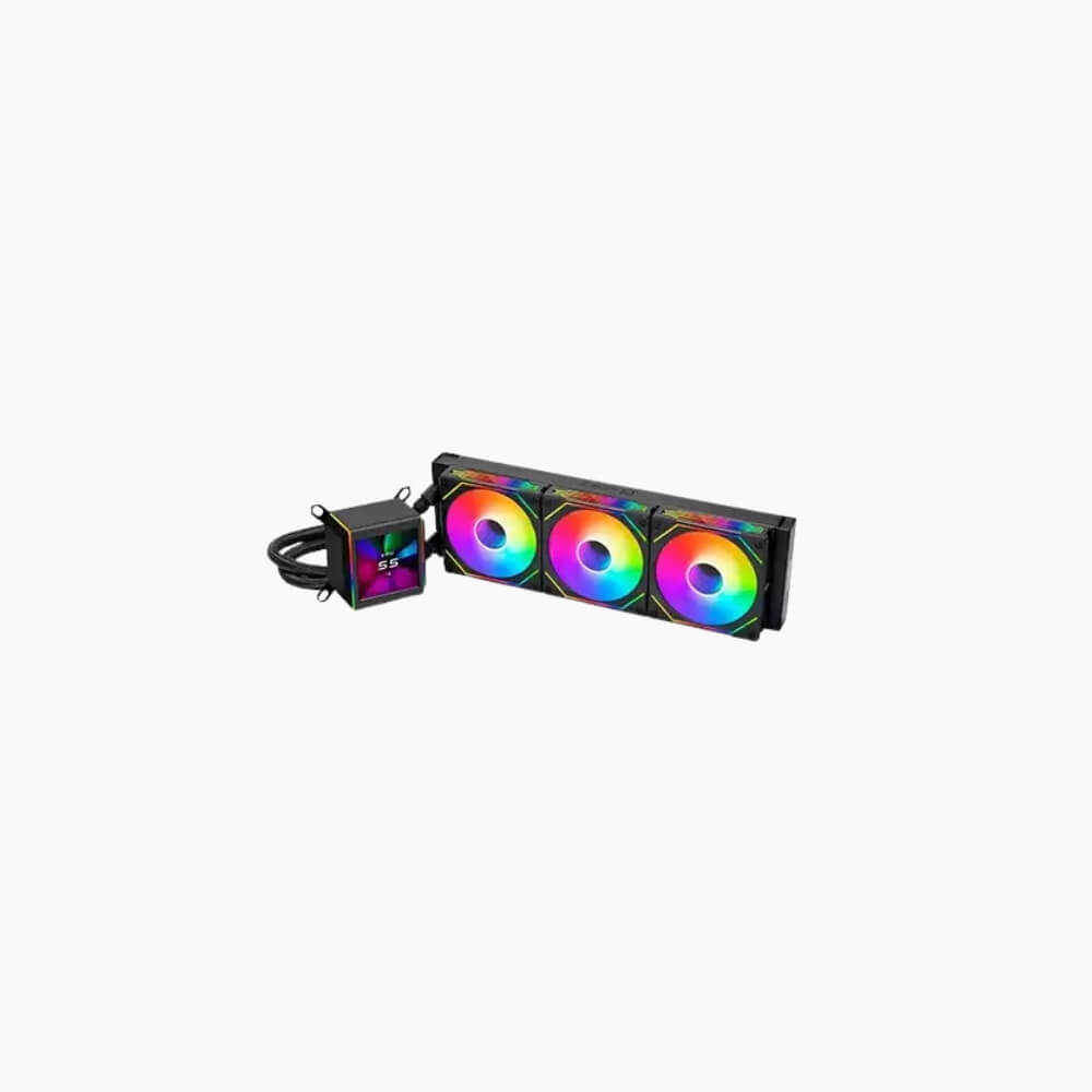 Experience exceptional thermal control with a triple-fan 360 mm radiator engineered for high-end CPUs. Three high-static-pressure fans and an optimized pump deliver steady temperatures under extreme gaming or workstation loads.