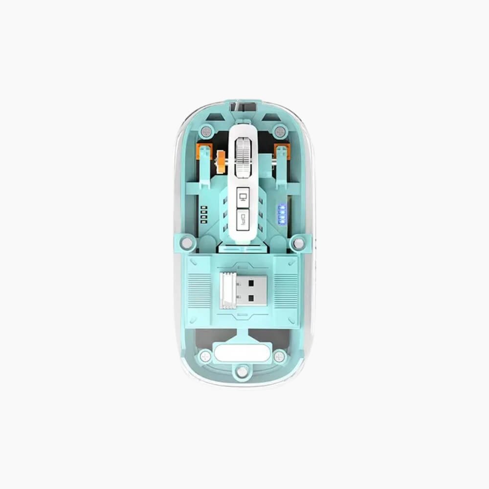 The PC POWER PGM-p4 is a visually striking and highly functional wireless mouse that combines eye-catching aesthetics with versatile connectivity options. This multi-mode peripheral features a distinctive blue transparent design that sets it apart from conventional mice, offering users both style and substance in a modern computing accessory.