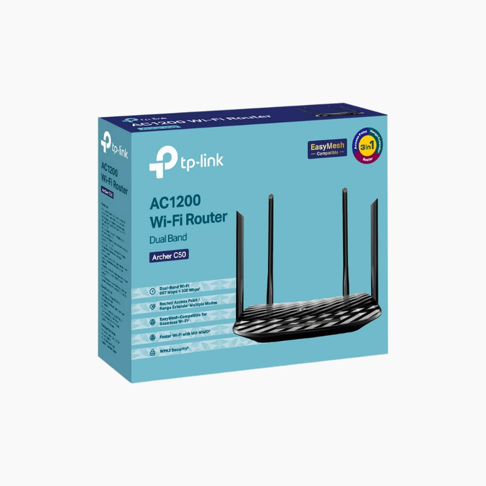 The TP-Link Archer C50 is a dual-band wireless router designed to deliver reliable AC1200 Wi-Fi speeds for home networking needs. This affordable router combines solid performance with essential features, making it suitable for everyday internet activities like browsing, streaming, and light gaming. With its dual-band technology, the Archer C50 can handle multiple devices simultaneously while maintaining stable connections throughout your home.